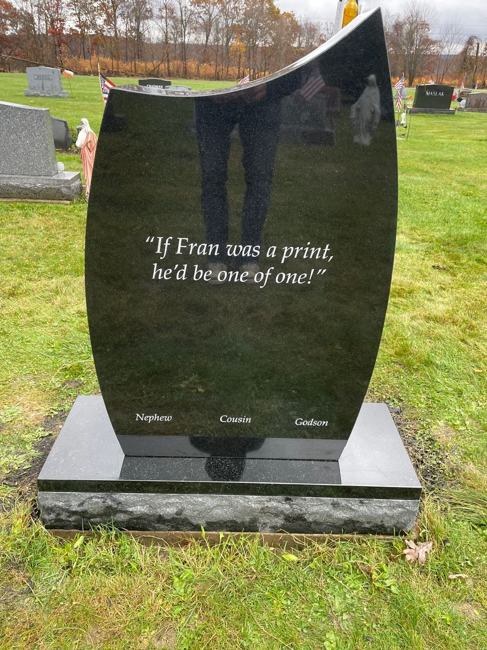 Our creations are custom-etched and can accommodate most custom designs - just let us know what you have in mind and we can help you get started. From favorite poems, song lyrics, or scripture verses to beautifully rendered graphic designs, we offer the services you need to create the ideal gravestone. Our friendly and compassionate team is always ready to go above and beyond for our clients. Reach out to us today to get started.